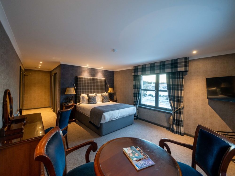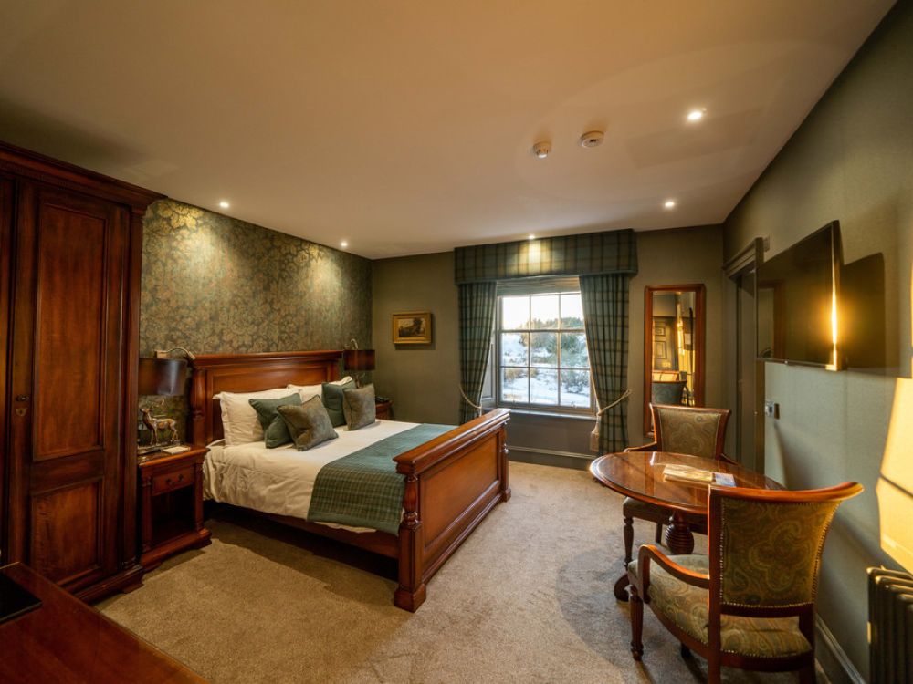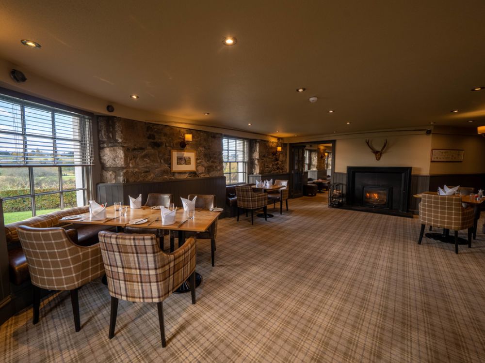 Many of the property’s 40 bedrooms boast stunning views, and all feature contemporary Scottish interiors that have undergone a recent refurbishment. Relax in the comfortable beds, luxuriate in the stylish bathrooms and enjoy the personal touches of Scottish hospitality, all in a wonderfully calm and restful property that is the perfect base for our exploration of this beautiful part of Scotland. The hotel’s restaurant which serves the finest in local, seasonal produce expertly created by a team of talented chefs, overlooks the river and provides a wonderful setting for your meals each evening.
