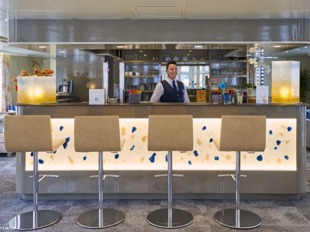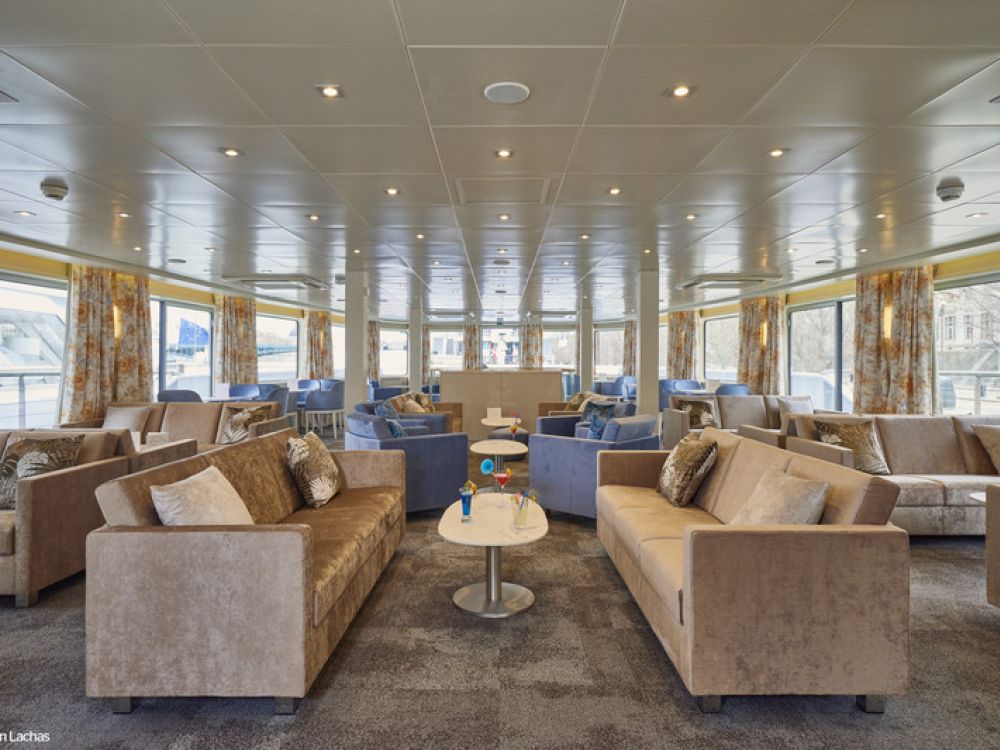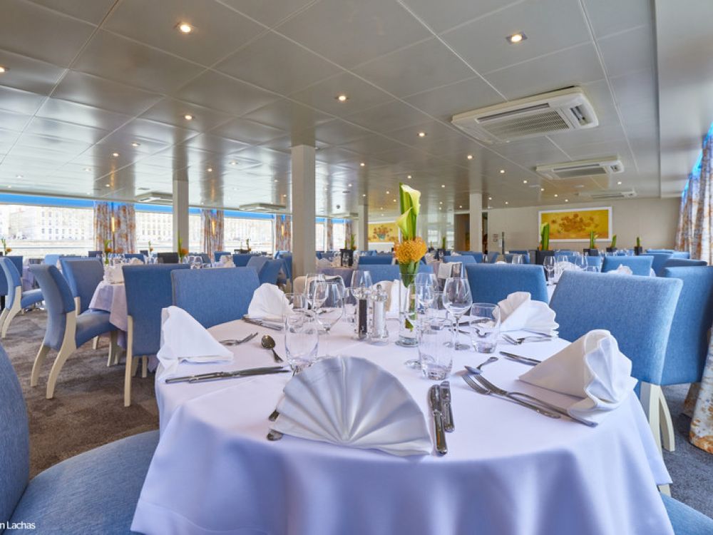 Docking space is allocated by the local river authorities. Views from cabins may occasionally be restricted. On occasion other river cruise vessels may dock alongside the ship. This may restrict cabin views, and you may find that embarking and disembarking necessitates walking through another ship’s reception area, and/or for their passengers to do the same