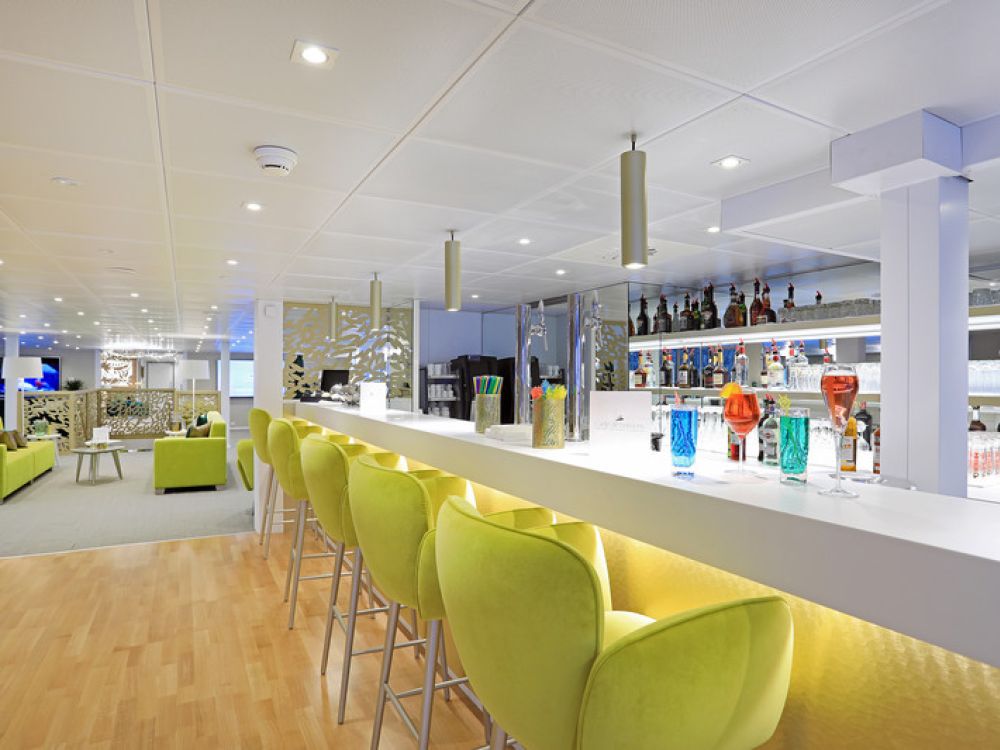 Meals are taken in the single sitting restaurant on the vessel’s Main Deck. The restaurant seats all passengers in an open seat arrangement and tables are arranged to seat groups of four, six and eight. Breakfast and lunch are buffet style and feature both hot and cold dishes, whereas dinner is served to your table with a choice of main course. The excellent cuisine features a selection of regional specialties and international dishes. Alcoholic and soft drinks are included in your holiday price (excluding premium brands) as are tea and coffee which are available throughout the day on a self-serve basis and with meals.
