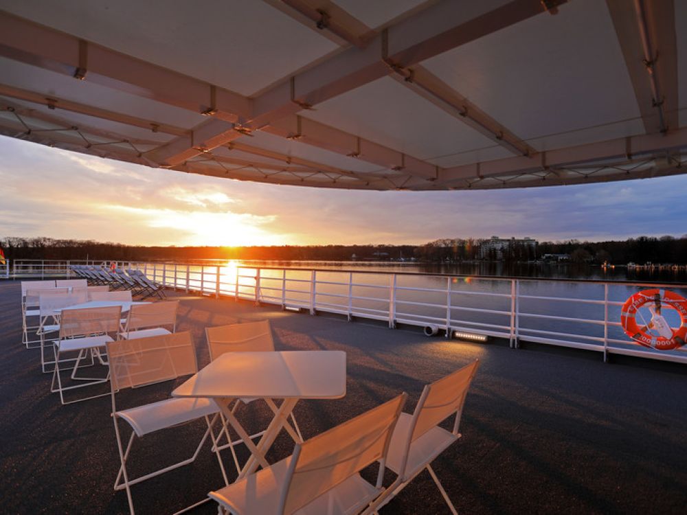 The ship has a Sun Deck which is available for guests to enjoy. There may be times, for example at periods of inclement weather or low bridges (when sailing), whereby it is necessary to close the Sun Deck. Please listen carefully to the Captain and Crew for instruction. Please also note that the Sun Deck and its steps may become slippery if the weather is cool or dew forms.