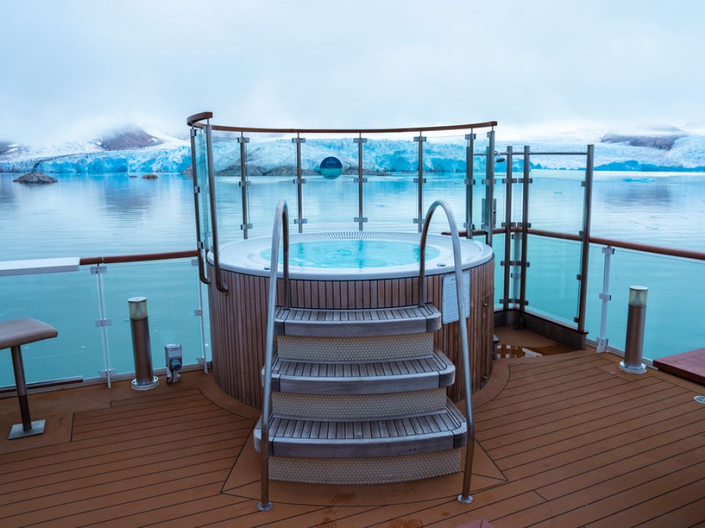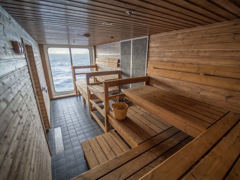 A gym and sauna are available for use on board. There are also two Jacuzzis on the top outside deck which offer amazing views.