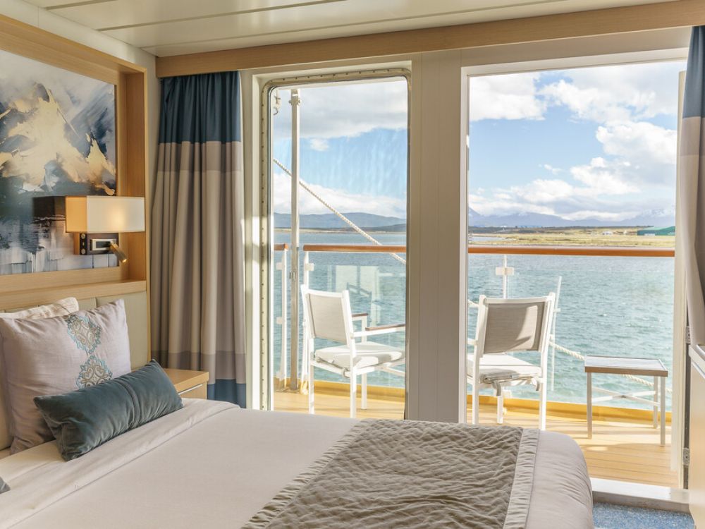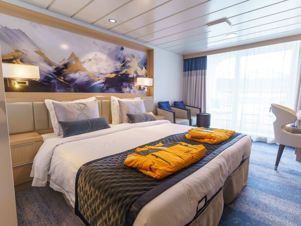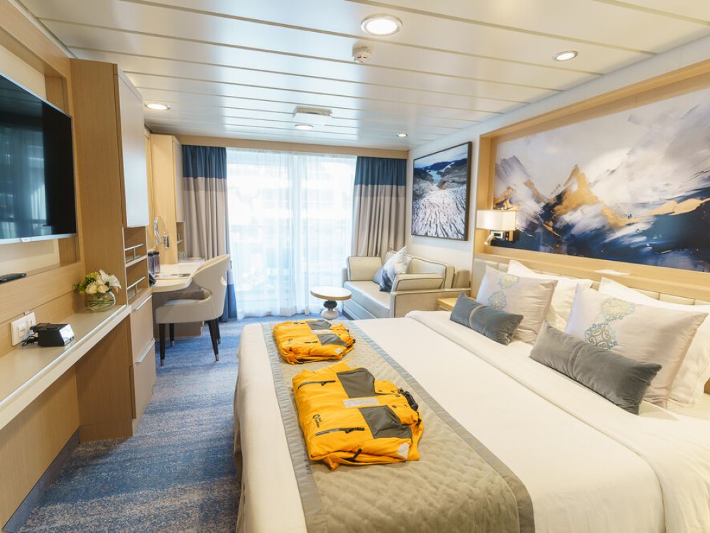 Ocean Explorer is a modern, elegant and purpose-built expedition vessel for polar exploration. The 138-passenger vessel has been designed with the latest in expedition ship technology. One of the ship’s key features is the ULSTEIN X-BOW®, a marine engineering innovation that ensures a comfortable and smooth sailing experience thanks to the inverted bow. Spacious cabins feature a modern, bespoke Scandinavian design and almost all have verandas. Guests can relax and find comfort in the spacious gym, sauna with large windows, and two outdoor Jacuzzis. Ocean Explorer features ample outdoor viewing areas and multi-height outer decks, which are ideal for long-view photography and wildlife viewing. The vessel is equipped with a fleet of 15 Zodiacs that enable guests to get off the ship quickly and safely for off-ship adventures. In addition to the well-appointed and spacious public areas, Ocean Explorer has an industry-leading mix of sustainability systems, including fuel-efficient Rolls Royce engines.