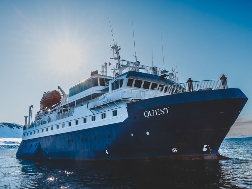 The MS Quest is the ideal small expedition ship, accommodating a maximum of 50 passengers in attractive and comfortable cabins with outside views. Built in Denmark in 1992 and last refurbished in 2018, this stout-hearted ship can operate in the most demanding and difficult places. As you would expect from a vessel designed and built in Denmark, she is comfortable and up to date with all the latest safety and communications equipment and her small size allows her to venture where larger ships cannot.
