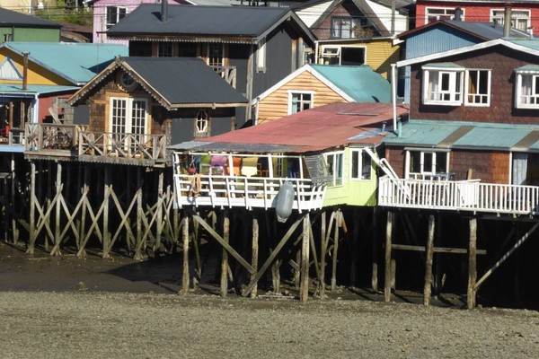 Next day we arrived off Chiloe Island and took in Castro with its fine wooden church. Castro has been affected by earthquakes as have most of the towns near the Andes and has a tidal range of over 4 metres, explaining the palafito houses on stilts. Lunch was taken on Quinchao Island and accompanied by Chilean dancing - we were also introduced (in our case anyway) to Pisco sours. We were now in a temperate farmed landscape with towns with more wooden churches and craft markets.