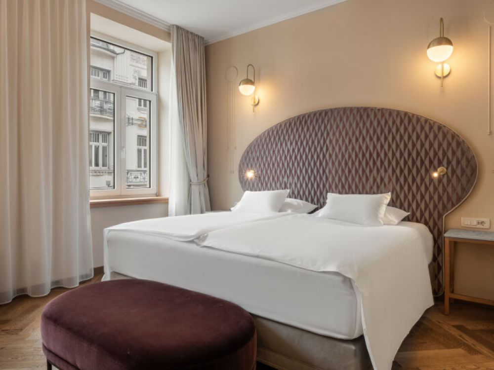 The Grand Hotel Union Eurostars is an elegant Art Nouveau property, located in the heart of the Slovenian capital. Ljubljana’s bustling old town, museums, bars and restaurants are all within easy walking distance of the hotel. The comfortable rooms feature high ceilings, LCD TV, king or twin beds and walk-in showers. The hotel has an indoor swimming pool and fitness centre for guests, as well as a popular café, Kavarna Union, on the ground floor.