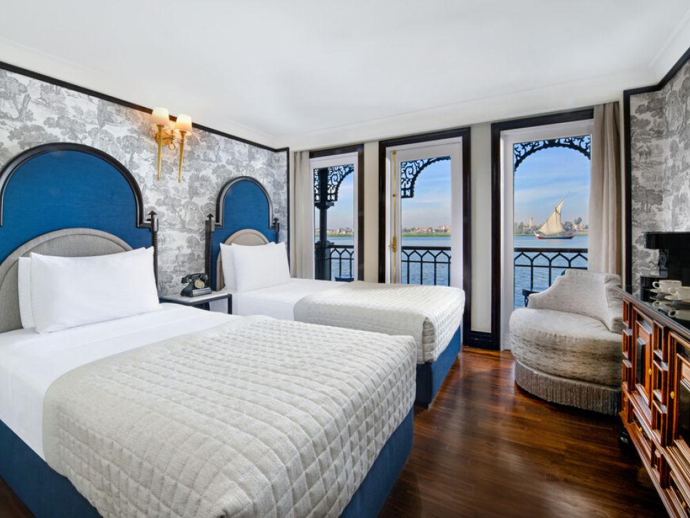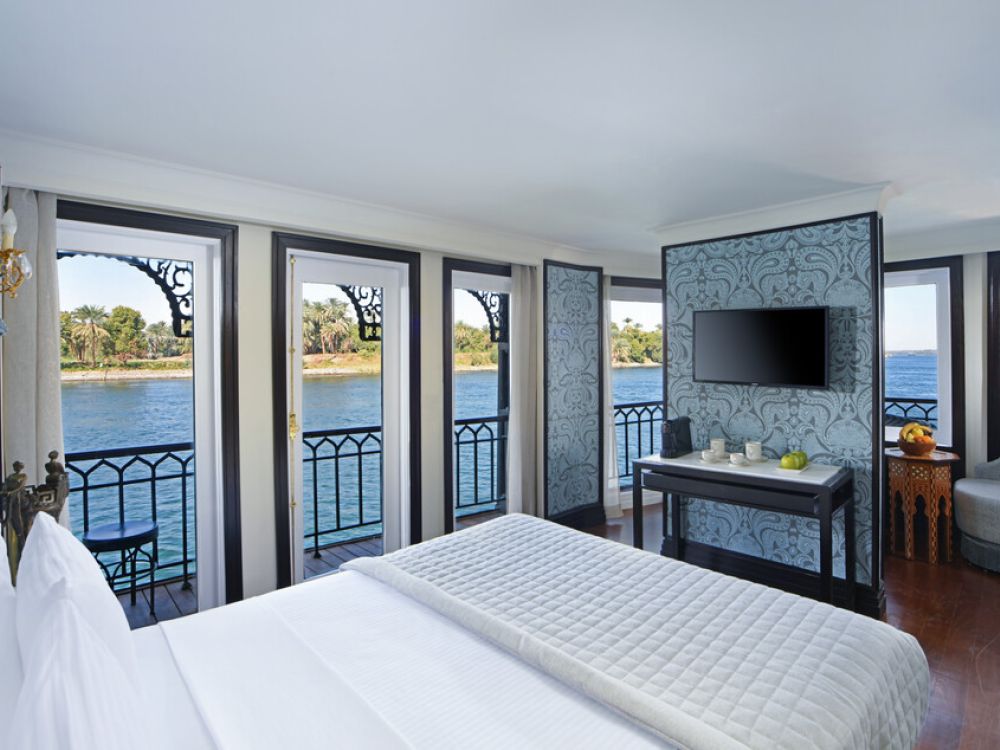 For our journeys along the Nile, we are delighted to have once again chartered the recently refurbished SS Misr, a very special and unique vessel. Originally constructed in Preston by the Royal Navy in 1918, the SS Misr was purchased and later converted into a luxury Nile steamer for King Farouk. Now fully restored to a five-star deluxe propeller steam vessel she accommodates just 44 passengers in spacious, air-conditioned cabins and suites. Misr means ‘the Kingdom of Egypt’ and the décor throughout the vessel reflects the period.