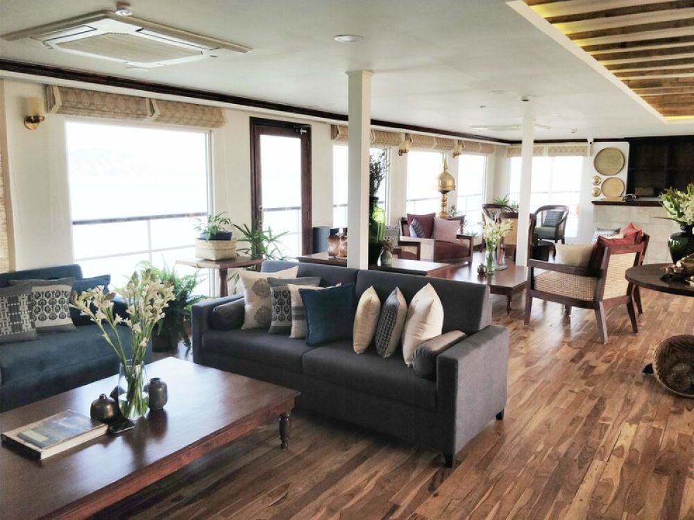 We are delighted to have chartered the RV Charaidew II for our scenic cruises along the Brahmaptura River. Launched in January 2019, this charming vessel features a range of comfortable cabins, all with French balconies. Accommodating a maximum of just 34 passengers and with an equal number of crew, the vessel will be sure to provide a friendly and welcoming atmosphere on board. With its expansive Sun Deck there is ample opportunity to watch the world gently pass by as you relax on board your floating hotel.