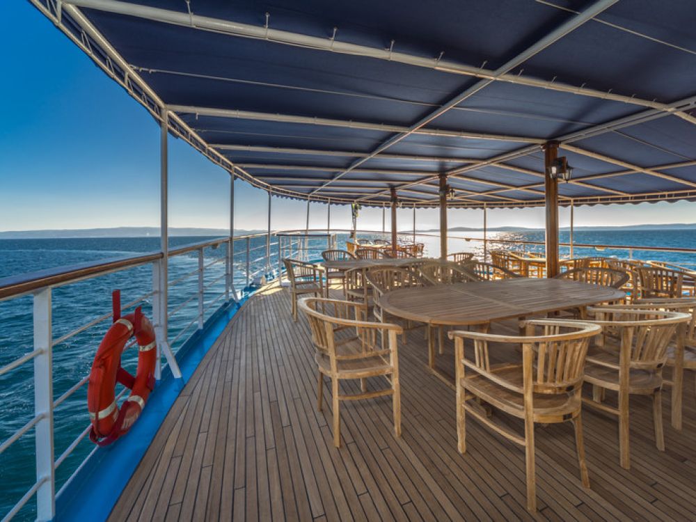 We are delighted to have chartered the MS Monet, a 220 foot motor yacht accommodating a maximum of 50 guests. Originally built in 1970, MS Monet was converted and launched as a passenger ship in 1998, fully renovated in 2016 and upgraded again in 2018. If you find large resort style vessels accommodating many thousands of passengers attractive then of course this isn’t the vessel for you. However, if you prefer an informal and warm atmosphere more akin to a private yacht combined with an itinerary dedicated to both discovery and relaxation then you need look no further.