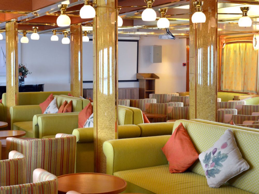 The spacious and finely decorated public rooms on board the MS Island Sky include a large lounge on the Columbus Deck featuring a selection of seating options from individual armchairs and sofas to side cushioned benches. Daily briefings and talks given by the Noble Caledonia onboard team take place in the lounge which is fitted with the highest standard of presentation equipment including multiple screens. For your convenience, it is also possible to follow the onboard lectures from the comfort of your suite.