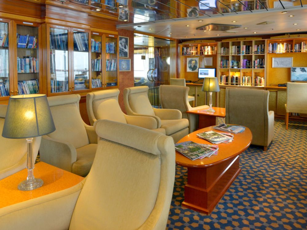 The Library – Located on the Marco Polo Deck. In The Library you can find a well stocked selection of reference books pertaining to the destinations. Fiction books, games and playing cards are also available. Novels brought on board may be exchanged with other books in the paperback library.