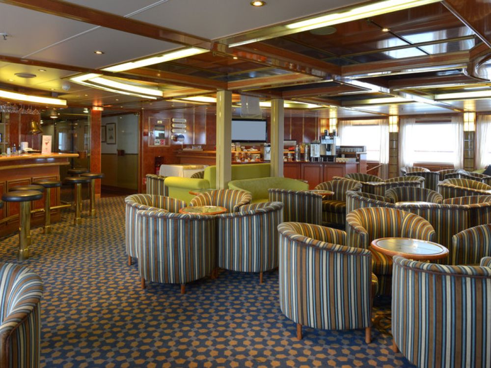 The Lounge – Located on the Columbus Deck, The Lounge is a comfortable place to relax or read a book. Daily Briefings by the Cruise Director or Expedition Leader are given in The Lounge which is fitted with multiple screens and presentation equipment. Informative talks from the Guest Speaker or expedition team are also given here.