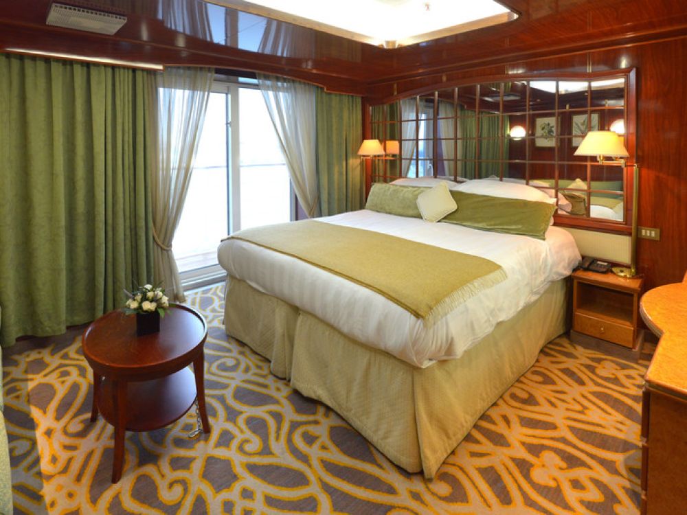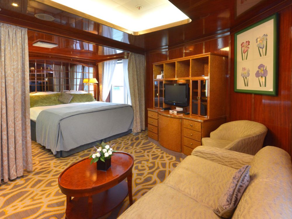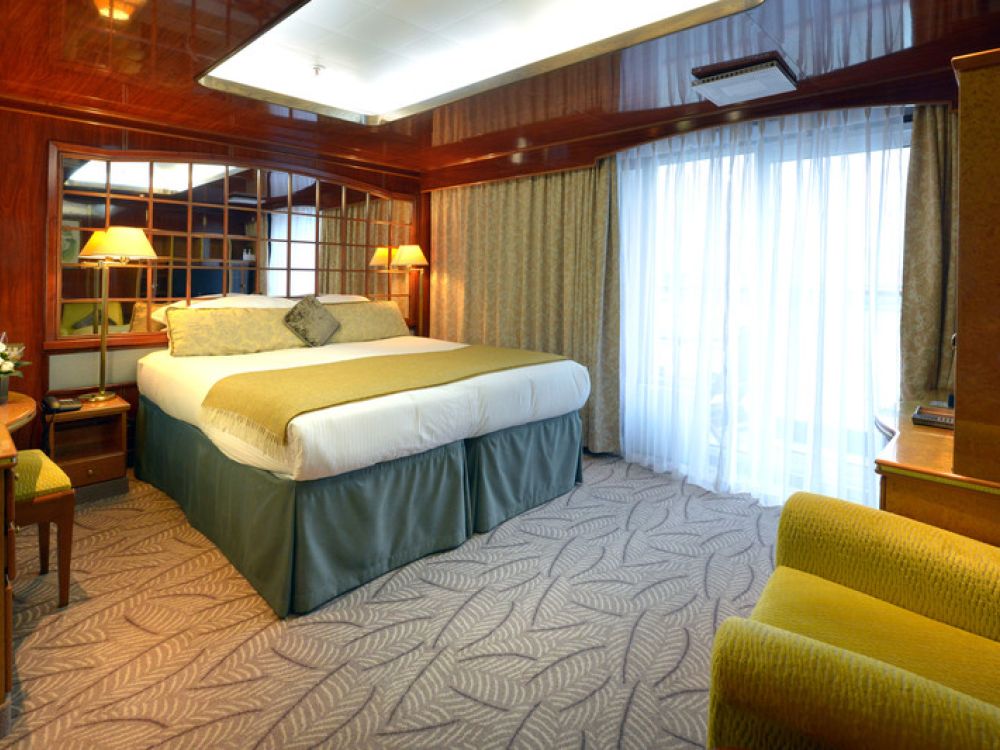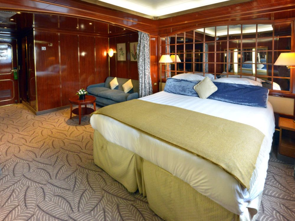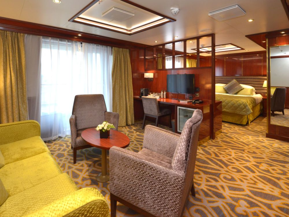 The impressive Island Suite located on the Explorer Deck features an extra large balcony stretching the length of the suite. Additional features of this marvellous suite include complimentary minibar stocked with your preference of beverages and complimentary laundry.