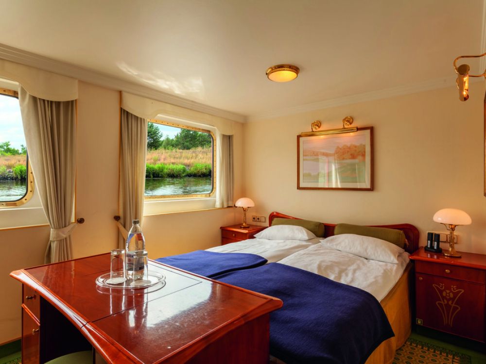 For our journey through Pomerania we have chartered the charming 80-passenger MS Thurgau Chopin. Renovated in 2018, this comfortable ship offers a tranquil atmosphere on which to relax and enjoy the picturesque views of the passing landscapes. The MS Thurgau Chopin is the ideal choice of vessel for cruising the waterways of Germany and Poland as with her shallow draft she is specifically designed to navigate through this region.